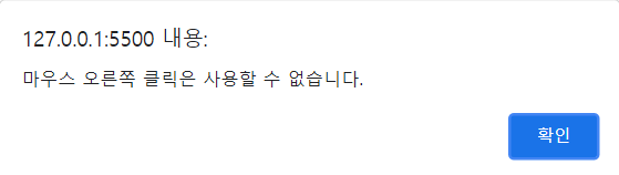 오른쪽 마우스 클릭을 할 시, alert가 발동되면서, 문구가 나온다.