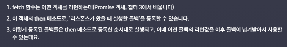 fetch함수가 리턴하는 어떤 객체 메소드