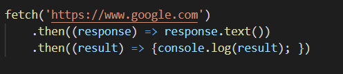 위에 코드를 보면 fetch함수에 서버에 response가 오면 두번째 함수가 실행된다. 그런데 알아야할 점은 fetch함수가 실행될때 바로 다음 함수가 실행을 하지않는다. 서버에 response가 오고나서 실행한다.