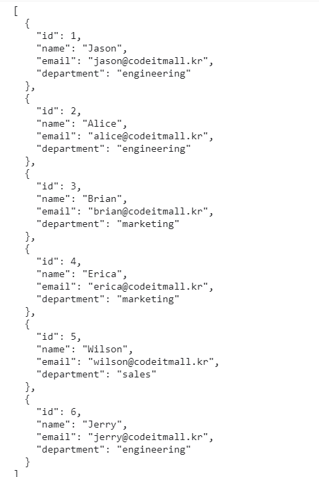 서버에 있는 JSON파일 맨끝에 원하는 멤버 숫자를 지정해서 출력을 하면 불러온다.