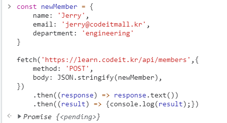 method: 'POST', body: JSON.stringify(newMember)를 작성하고