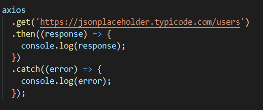 axios 객체를 사용해서 GET 리퀘스트를 보내고 그 리스폰스를 받는 코드이다.