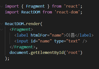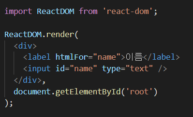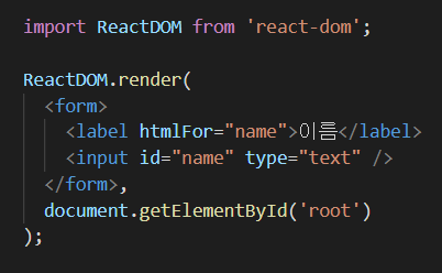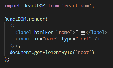 그리고 for속성은 htmlFor라고 작성해야 동작을 한다.
