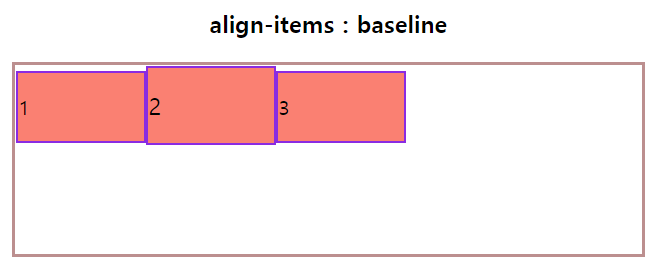 플렉스 요소는 컨테이너의 기준선에 배치된다.