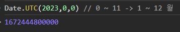- 1970년 1월 1일 00:00:00 기점으로 현재 시간까지 경과한 밀리초 숫자로 반환한다.