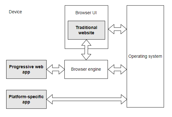 플랫폼별 앱, 웹사이트, PWA의 이점