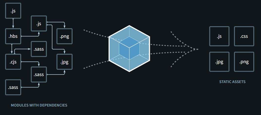 webpack이 애플리케이션을 처리할 때, 내부적으로는 프로젝트에 필요한 모든 모듈을 매핑하고 하나 이상의 번들을 생성하는 의존성 그래프를 만든다.