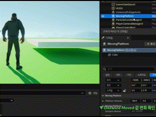 โ PlatformVelocity๋ z์ถ 200, MovedDistance๋ 500์ผ๋ก ์ค์
