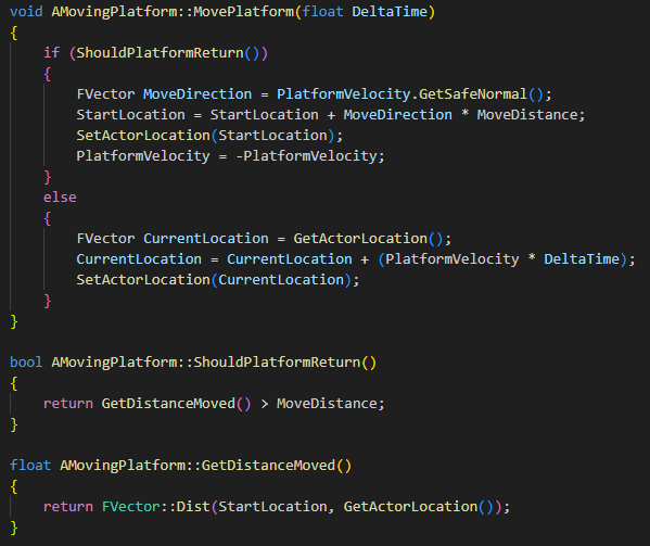โ ๋ฐํ๋ฌธ return์ ํ์ฉํ์ฌ ShouldPlatformReturn(), GetDistanceMoved() ๋ง๋ค๊ธฐ