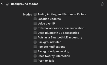Background Mode는 iOS 앱이 Background에서 실행 가능한 기능을 설정하는 옵션이다.