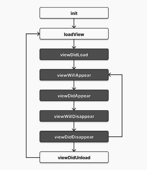 뷰를 만들고 메모리에 올립니다.메모리에 로드된 후 호출된다. 특별한 경우가 아니라면 딱 한번 실행되기 때문에 초기화할 때 사용할 수 있습니다.뷰가 생성되기 직전에 실행된다. 뷰가 나타나기 전에 실행해야 하는 작업들을 여기서합니다.뷰가 생성된 후 실행된다. 데이터를 받아서 화면에 뿌려주거나 애니메이션 작업 등을 하는 로직을 위치시킵니다.뷰가 사라지기 직전에 실행된다. 뷰가 삭제되려고하는 것을 viewController에 알리는 역할을 한다.뷰가 사라지고 난 후 실행된다. 뷰가 삭제 됐음을 viewController에 알린다.뷰가 나타날때 실행된다. UIKit viewDidApear와 동일하다.뷰가 사라질때 실행된다. UIKit viewDidDisappear와 동일하다.비동기 작업을 수행해야할 때 사용한다.iOS앱은 기본적으로 Foreground, 즉 사용자가 앱을 열어 활성화한 경우에만 작동합니다.