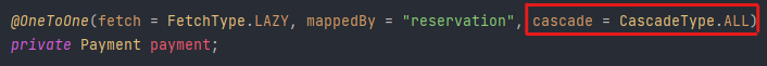 부모 객체인 Reservation 이 저장될 때 자식 객체인 Payment 도 함께 저장될 수 있도록 함.