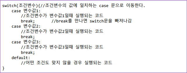 else if 문 중에서도 조건에 비교 변수와 값이 명확하게 1:1 매핑되는 경우 switch문으로 사용할 수도 있다.