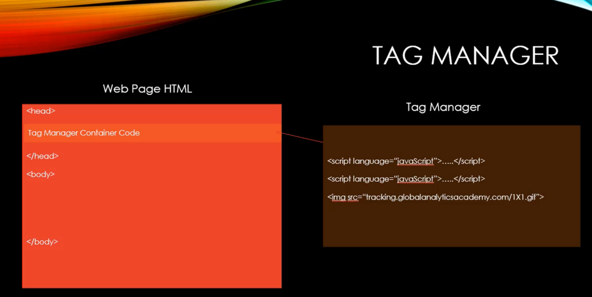 TagManager Tag 를 관리할 container를 제공. Webpage에는 하나의 container 가 심어지고, container를 관리할 Tagmanager 를 통해 직접 코드를 심지 않고도 데이터 수집 가능