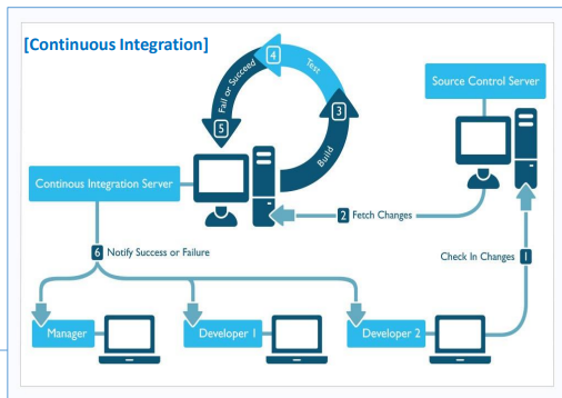 - 코드 변경 사항이 메인 코드베이스에 병합될 때마다, 자동화된 시스템이 코드를 빌드하고 다양한 테스트(단위 테스트, 통합 테스트 등)를 실행하여 변경 사항이 기존 기능을 깨뜨리지 않는지 확인