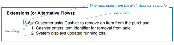 - Main Success Scenario)에서 분기되는 다른 시나리오나 상황을 설명