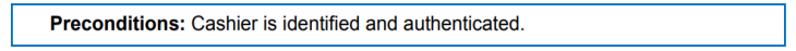 - Use Case의 시나리오를 시작하기 전에 항상 참이어야 하는 조건을 명시
