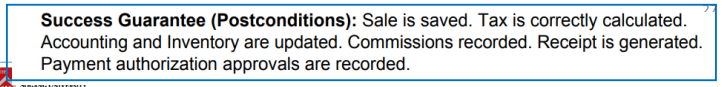 - Use Case가 성공적으로 완료될 경우에 반드시 충족되어야 하는 조건을 명시