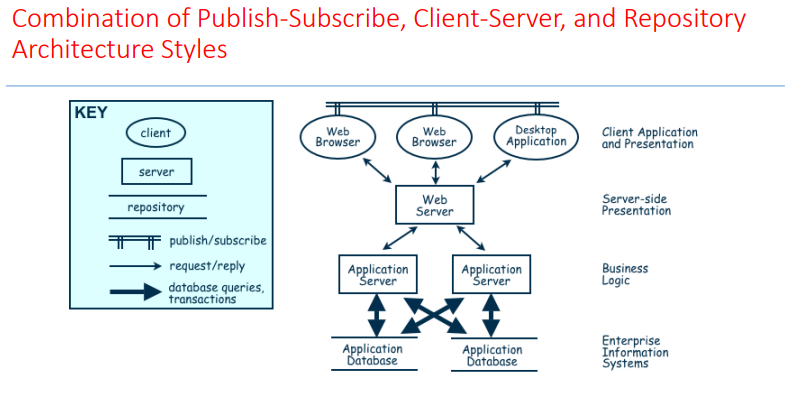 • Use mixture of styles to model different components or types of interaction (e.g., client components interact with one another using publish-subscribe communications