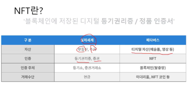 - NFT는 블록체인 기술을 이용해 디지털 자산의 소유권을 증명하는 고유한 토큰입니다.