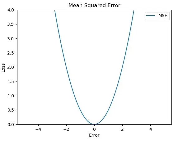오류 값이 제곱되기 때문에, 오류가 0과 1 사이일 때는 오류가 원래 값보다 작게 반영되고, 오류가 1보다 클 때는 원래 값보다 크게 반영된다.