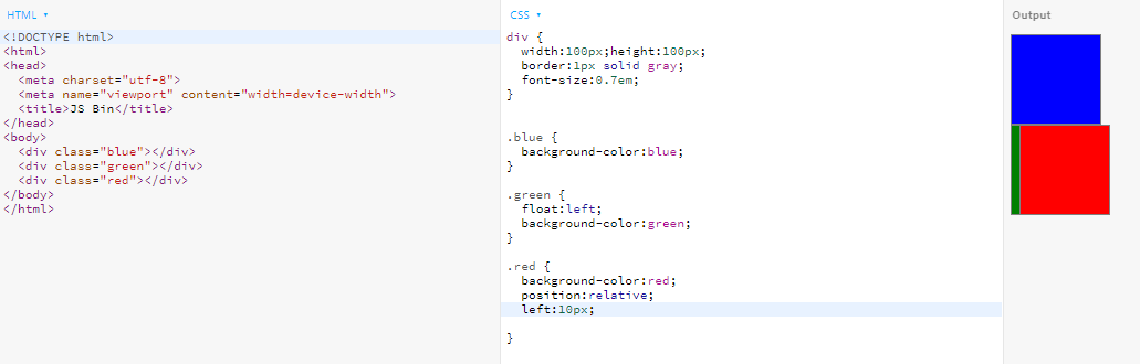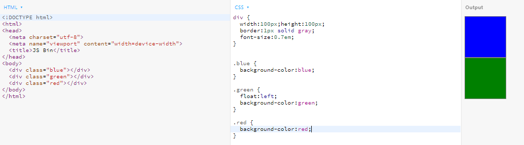 예를들어 아래 그림과 같이 green class를 float으로 해 주면 red class가 표현이 안 된 것을 확인할 수 있다.