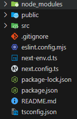 Page Router와 비슷하게 publick 폴더, src 폴더, next.config.mjs(next앱의 옵션 설정) 파일이 존재합니다.