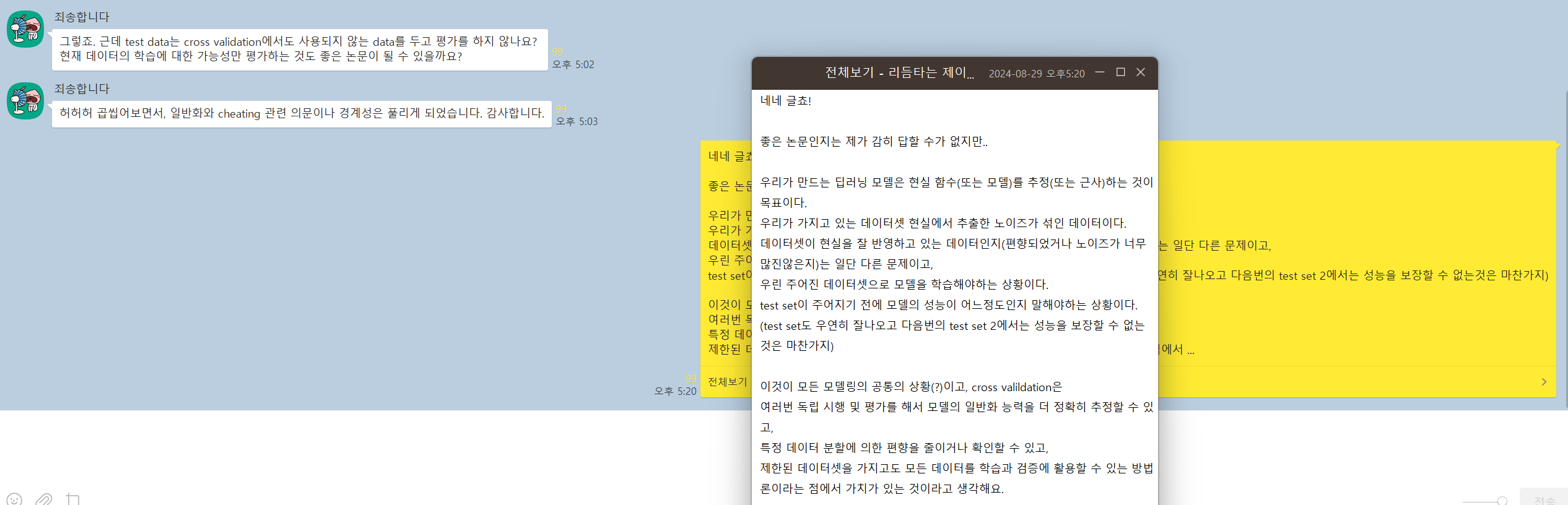 제한된 데이터셋을 가지고도 모든 데이터를 학습과 검증에 활용할 수 있는 방법론이라는 점에서 가치가 있는 것이라고 생각해요.