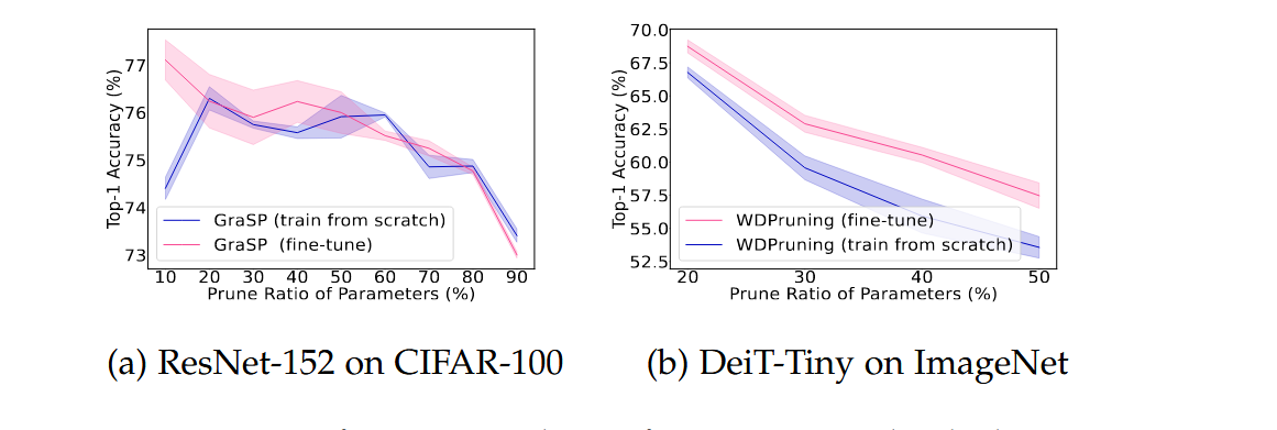 - 특정 모델 구조에 대해 성능 손실 없이 가능한 최대 프루닝 비율은 존재하는가?