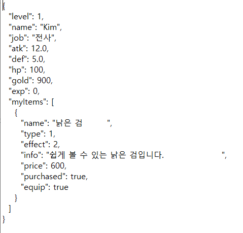 json 파일을 수정하여 Gold 를 9999999 G 로 바꾼다거나, 공격력과 방어력 스탯을 조작할 수 있다는 것이다.