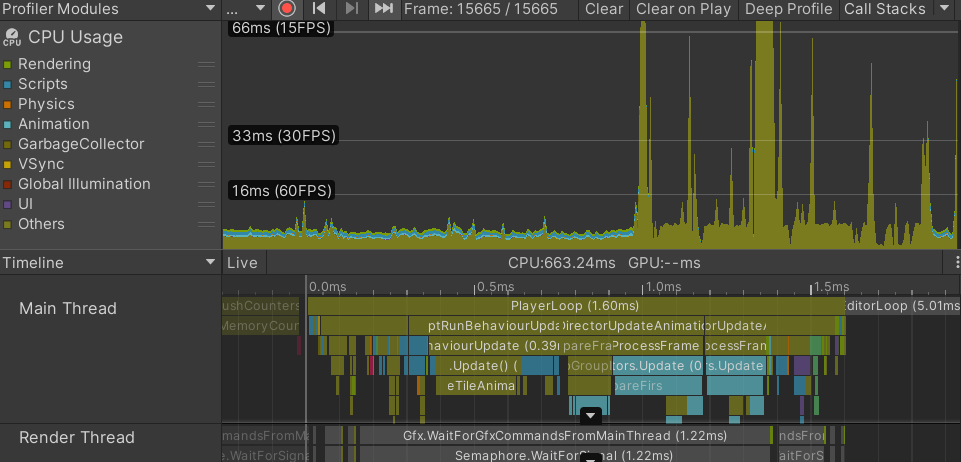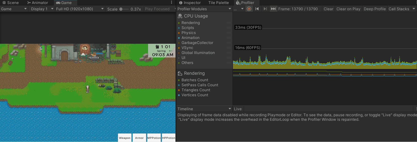 이를 통해 플레이모드에서 실시간으로 어느 부분에서 CPU 가 많이 사용되는지,