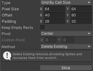Pixel Size - 한 sprite 의 픽셀 사이즈 (x,y) 를 설정