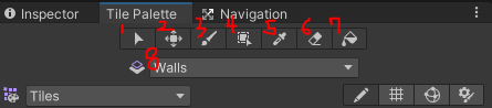 아래 버튼을 클릭하여, 타일 팔레트를 수정하여 사용하지 않는 타일을 삭제할 수 있다.