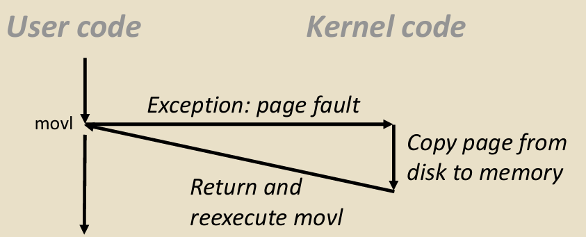 유저가 할당된 메모리에 값을 적었을 때 그 페이지가 디스크에 있을 경우 디스크에서 메모리로 카피한 후 return 하고, 해당 명령줄을 다시 실행함