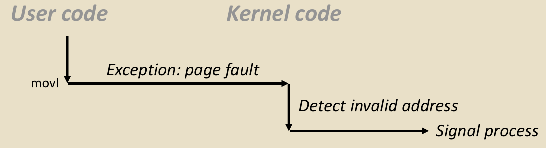 유저가 잘못된 메모리 주소를 참조하면 프로세스에 SIGSEGV신호를 보내고 프로그램을 종료함.