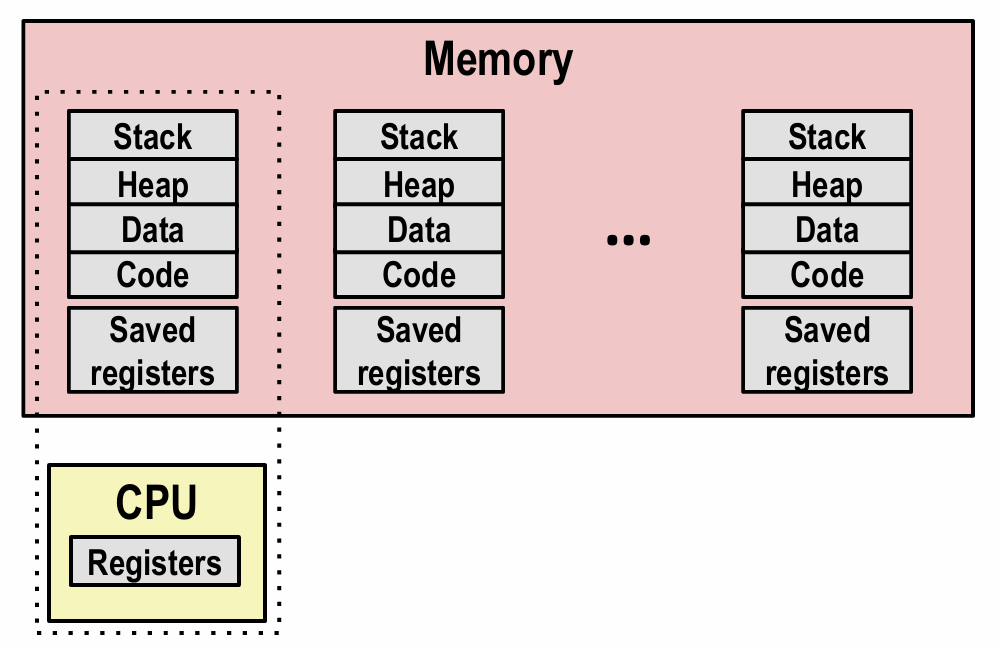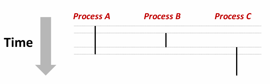 이처럼 concurrent process의 control flow는 시간적으로도 물리적으로도 분리되어 있지만, 이용자는 아래와 같이 병렬적으로 실행된다고 느끼게 된다.
