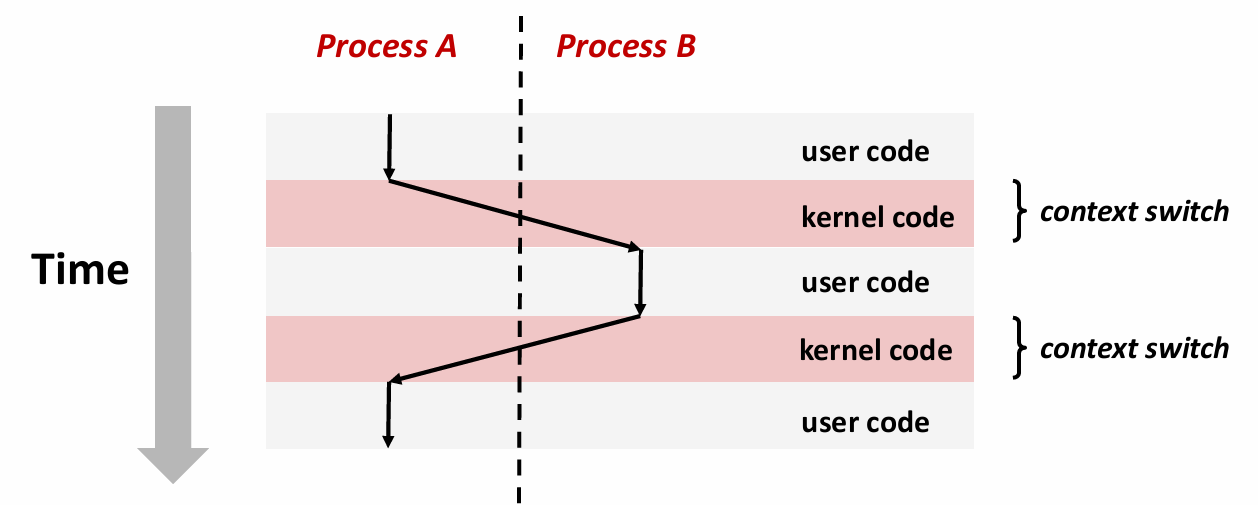 kernel의 context switch를 통해서 control flow가 한 프로세스에서 다른 프로세스로 패스된다.