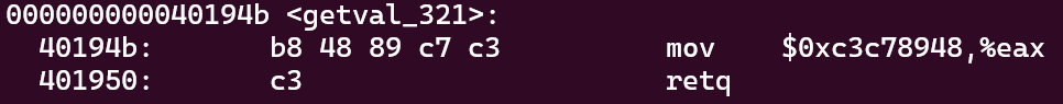 이 코드는 어떠한 상수 값을 %eax 레지스터에 저장하는 코드이지만, 48 89 c7 c3만을 해석한다면