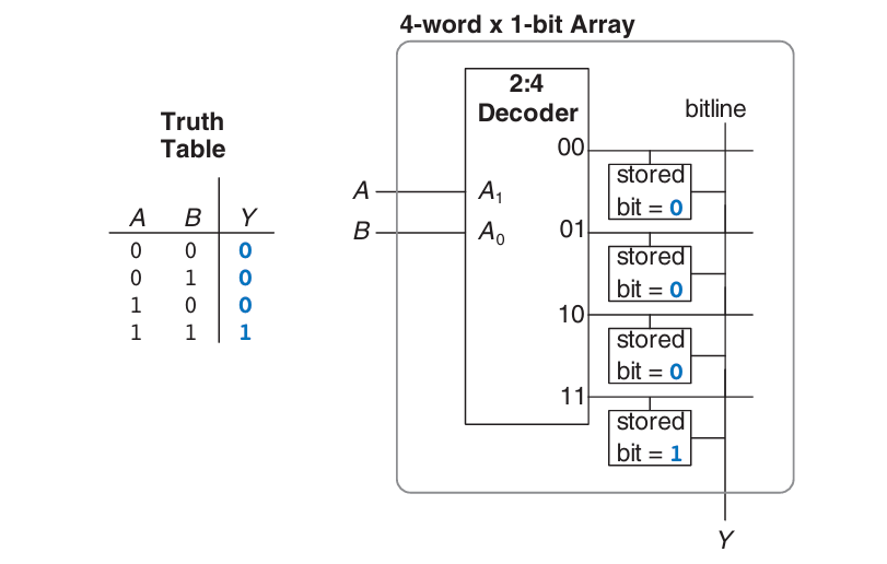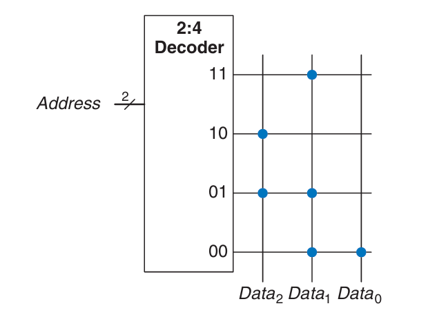 ROM은 주로 데이터 저장소로 쓰이지만 combinational logic unit으로도 사용될 수 있다.