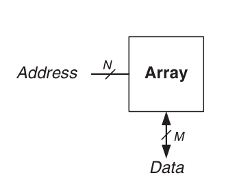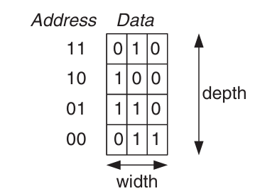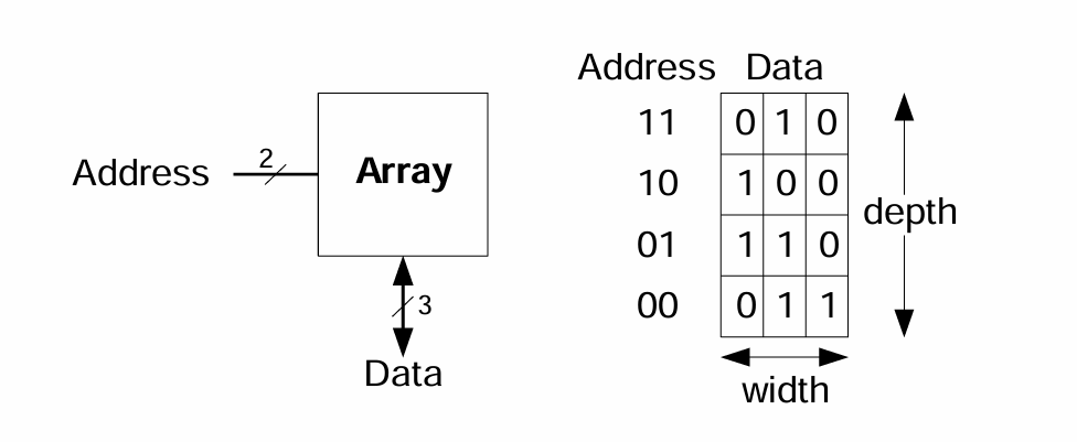 address bits와 data bits로 구성된 memory array는 개의 행(row)과 개의 열(column)로 구성된다. Depth는 행의 개수이고 Width는 열의 개수이다. array의 크기는 이다.
