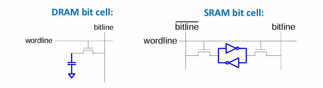 각 bit cell은 wordline과 bitline에 연결되어 있다.