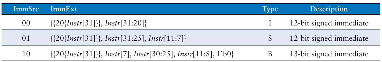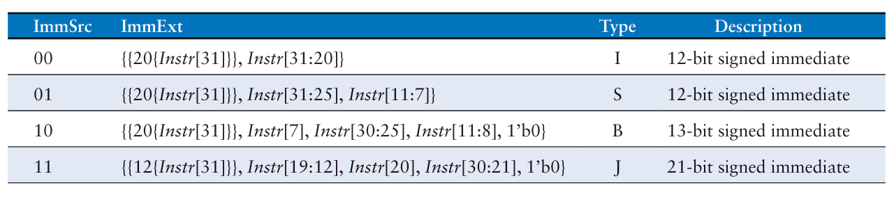 위 datapath에서 ImmSrc encoding은 다음과 같다.