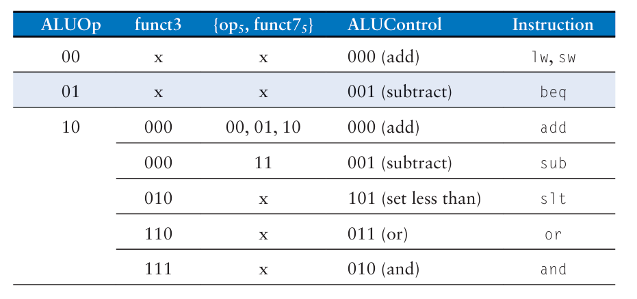 ALUControl은 ALUOp와 funct3, funct7에 의해서 결정된다.