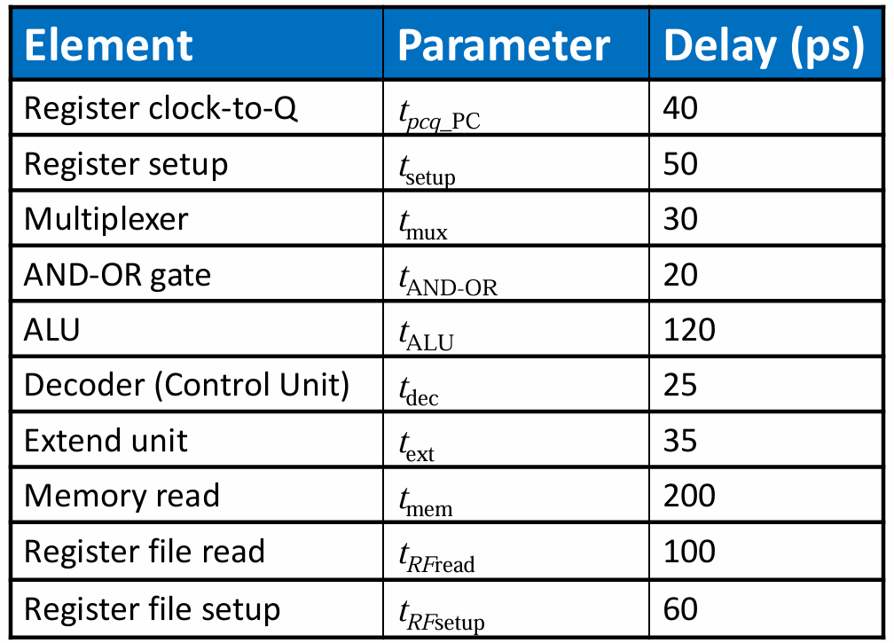 single-cycle에서 는 critical path에 의해 정해지는데, 위 프로세서에서 critical path는 lw이다.
