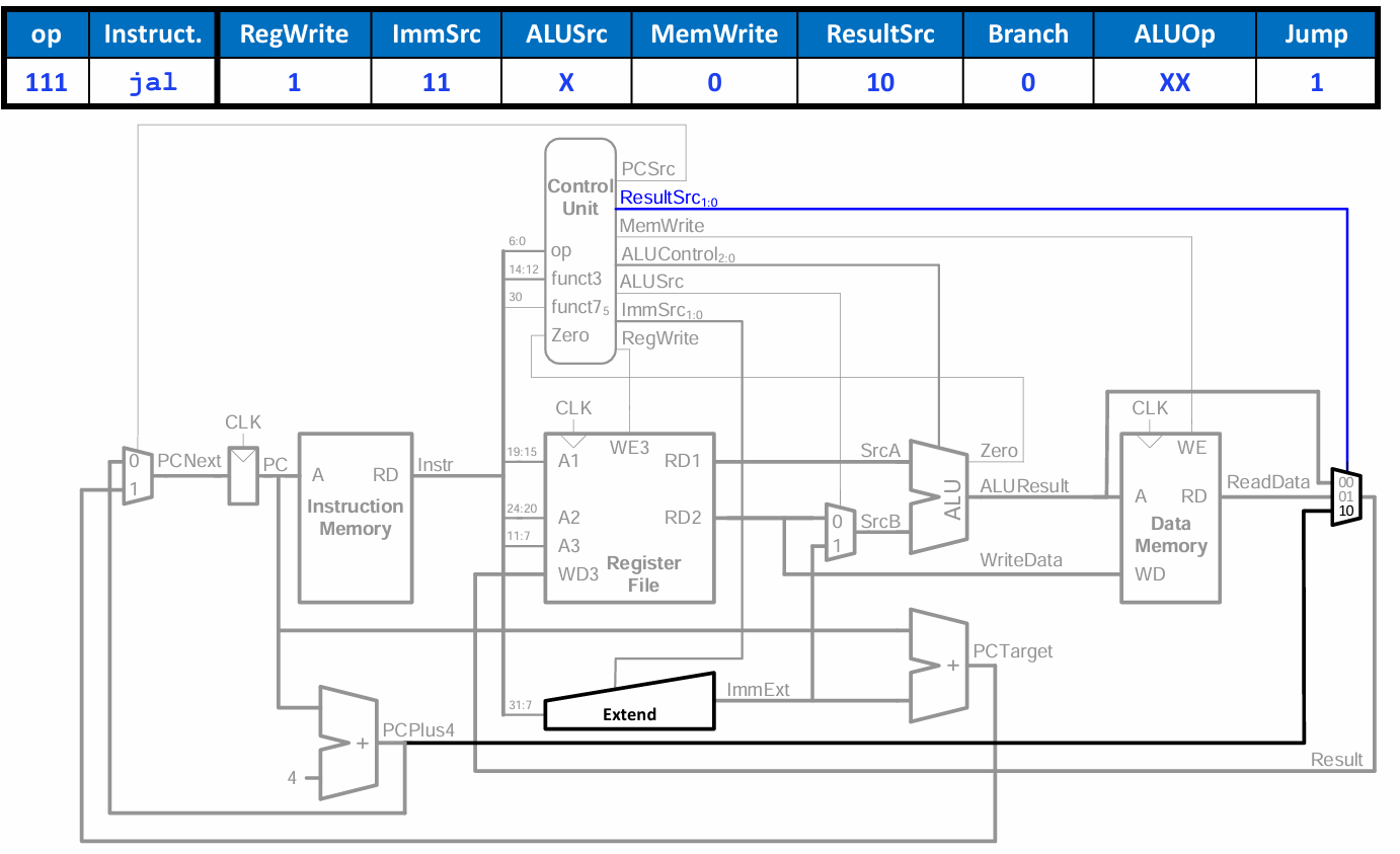 J-type 명령의 immediate를 인코딩하기 위해 ImmSrc를 추가해야 한다.