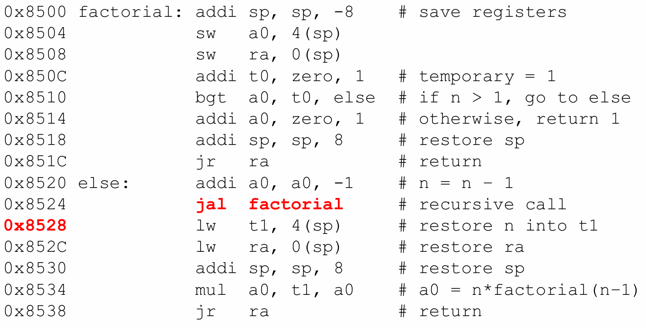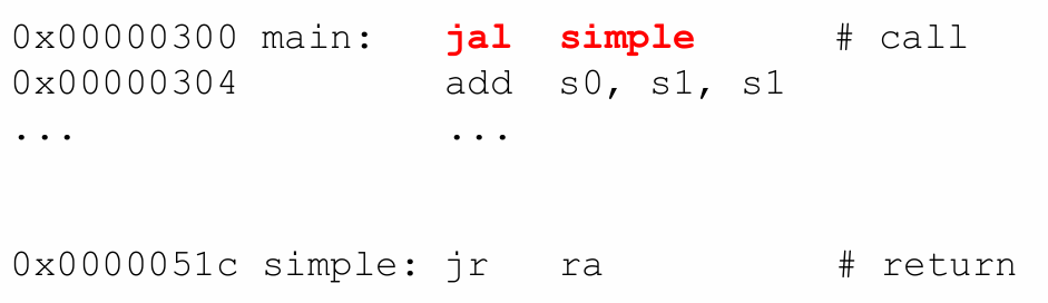 jump 전에 ra 레지스터에 PC+4를 저장한다.