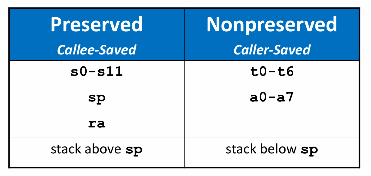 ra, 혹은 t0-t6/a0-a7)a0-a7에 인자를 담는다.jal callee(label)a0에 있다.Callee