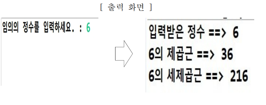 [문제2] 임의의 정수 하나를 입력 받아서 그 수의 제곱, 세제곱을 구하여 화면에 출력해 보세요