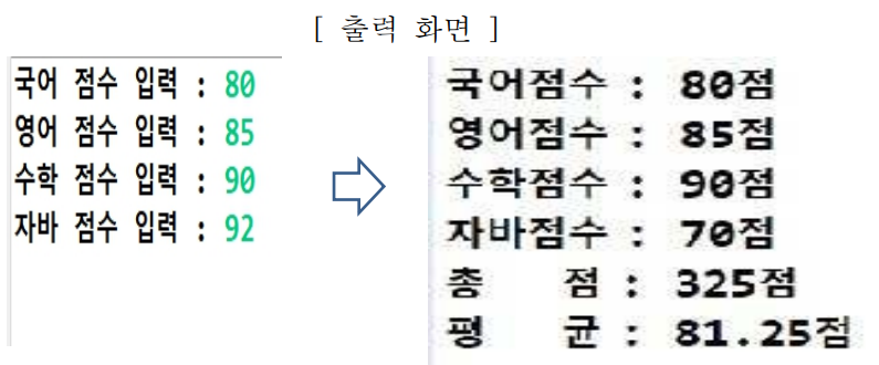 System.out.print("자바 점수 입력 : ");