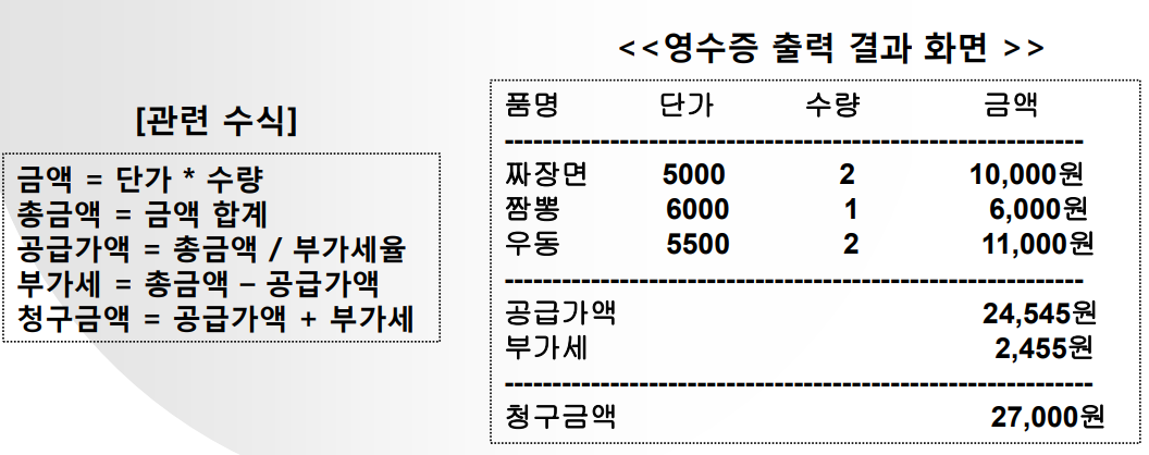 [문제5] 영수증이 출력될 수 있도록 프로그램을 작성
